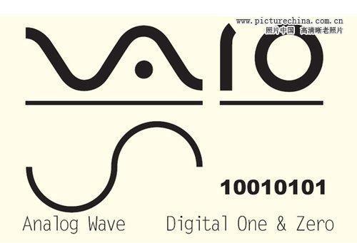 这个索尼的LOGO代表着品牌将数字和电脑模拟科技的结合。"VA"的设计代表着模拟波形,"IO"代表着二进制码。